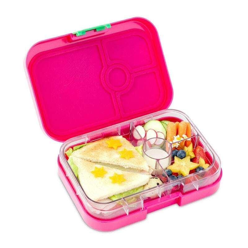 Yumbox ‘Original’ with 6 divided sections, and Yumbox ‘Panino’ with 4 divided sections (big enough to hold a full sandwich). Both options include a small treat or drip well, perfect for little fingers to fit into. Each lunchbox holds approximately 3 ½ cups of food. There are also a variety of colours to choose from to suit all little personalities.